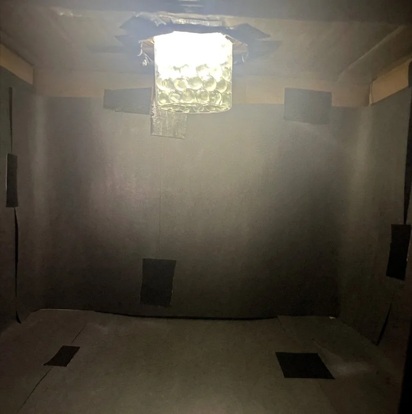 Material testing was conducted to identify the best material for creating the desired light refraction effect.