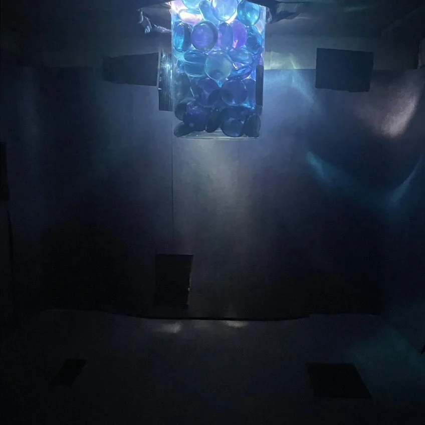 This project was an opportunity to explore creating an experience using light refraction within a space. The visuals I was drawn to were the way light refracts through water and reflects on the underside of a low hanging bridge.