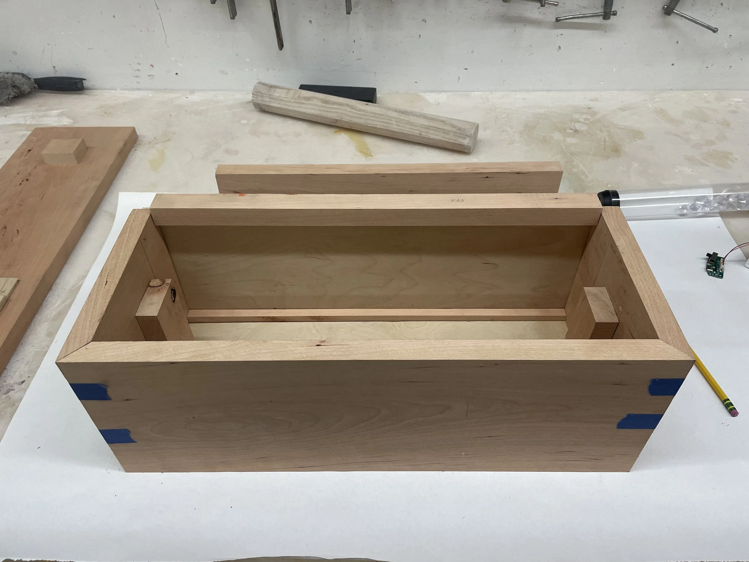 The final prototype was made from cherry hardwood, with the internal structure running on a small step motor and gear to continuously rotate the tube of material.